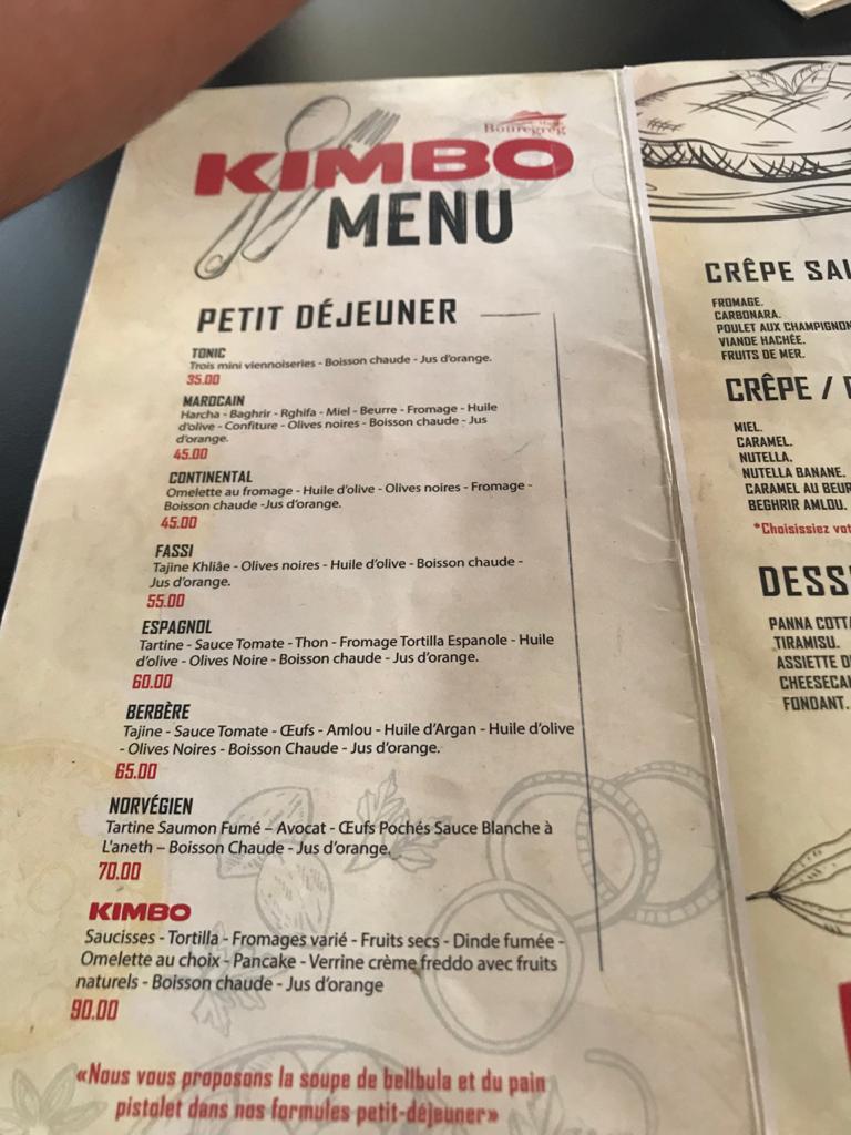 In conclusion, Kimbo Marina Salé presents a well-rounded menu filled with delicious and authentic options, perfect for anyone craving a satisfying meal. Whether you are after a casual breakfast, a light snack, or a fulfilling dinner, this restaurant offers something for every palate, all at reasonable prices.