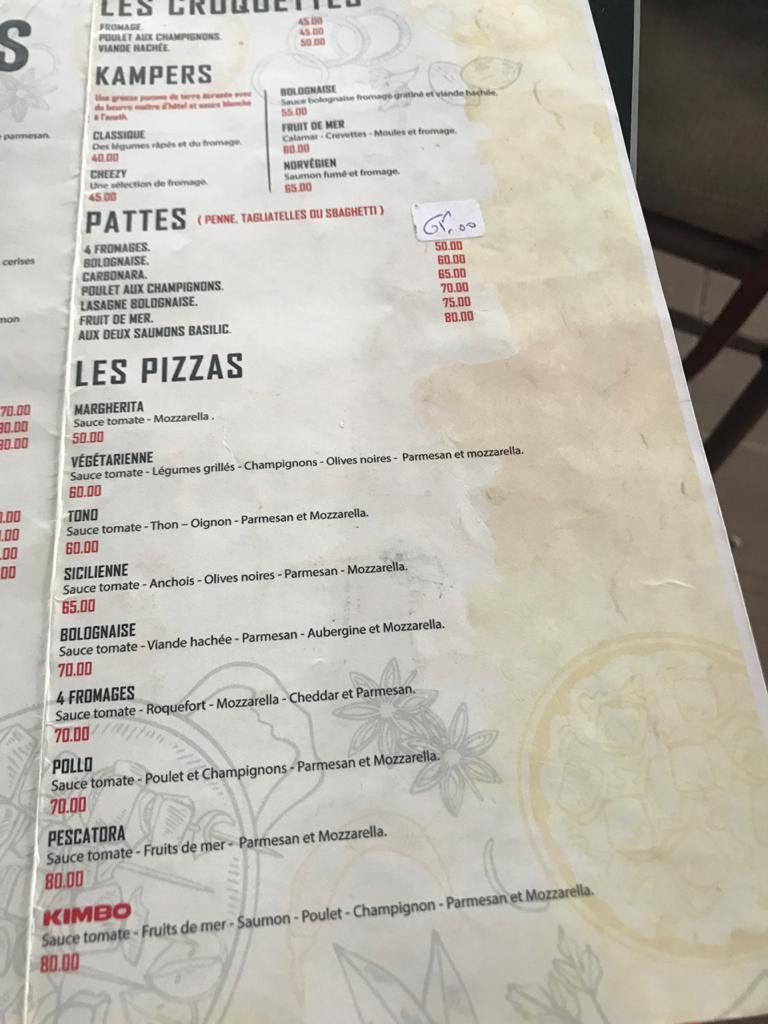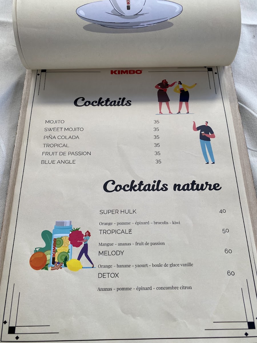 Kimbo Marina Salé offers a diverse and delightful menu that caters to a variety of tastes and dining preferences. Whether you're in the mood for a light breakfast, hearty mains, or a delicious pizza, this restaurant provides an excellent selection.